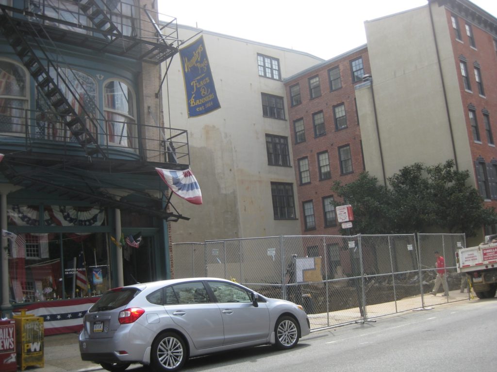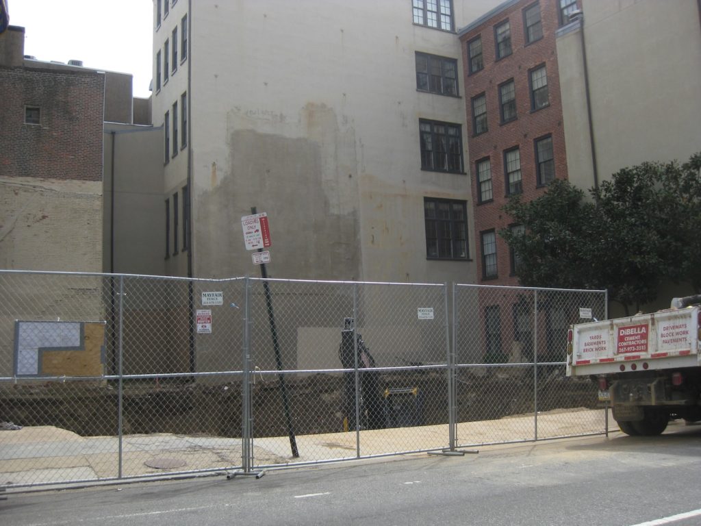 At 240 Arch St., a former surface parking lot across from the Betsy Ross House is experiencing a surprising transformation. In the last few weeks, a new hole has appeared in the ground in preparation for the construction of three mansions.