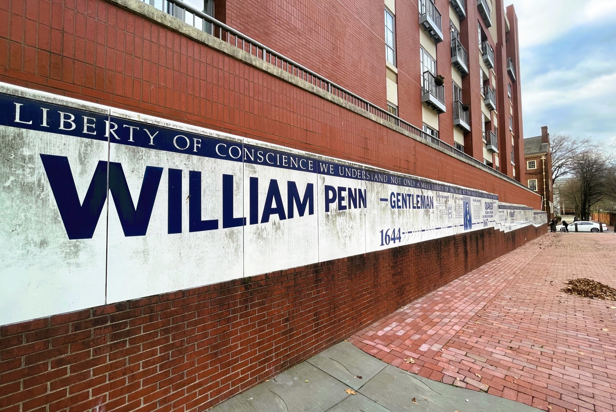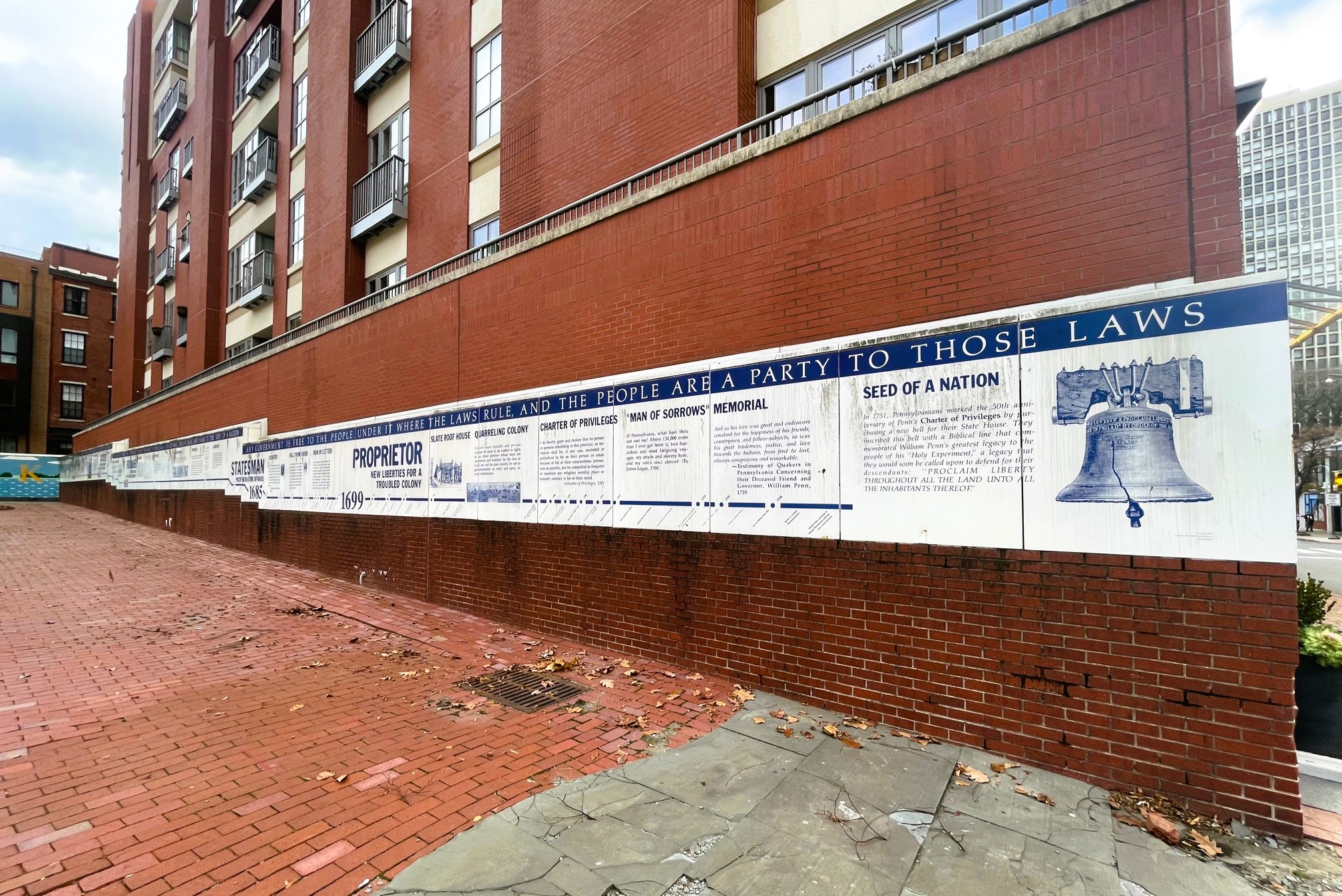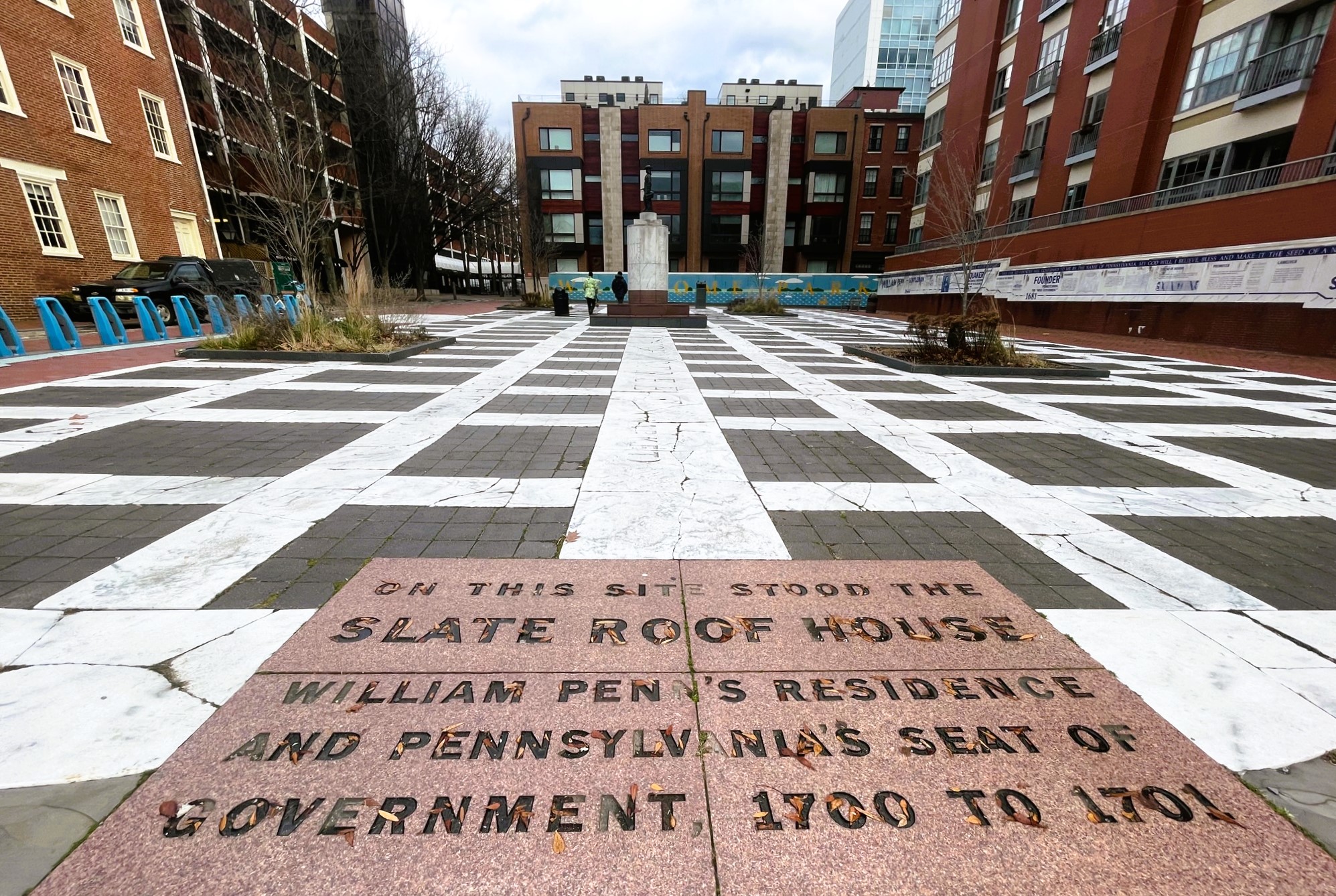A bit of history on the site: William Penn lived in a slate-roofed house here after arriving (on his boat, the Welcome). The building was demolished in the mid-19th century to make way for another building, which then burned down. Another building came and went, before the park we see today was built in 1982 for Philly’s 300th birthday.