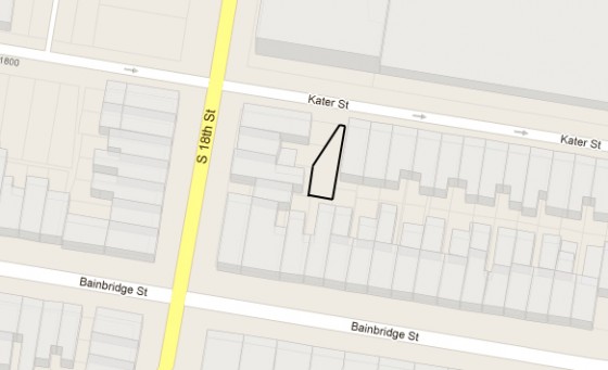 A reader tipped us off about a newly poured foundation at 1732 Kater St., just a block away from South Street West's Pharmacy Row. This address has been long-vacant, likely due to the fact that the lot has a totally strange shape that makes row home building conventions pretty much