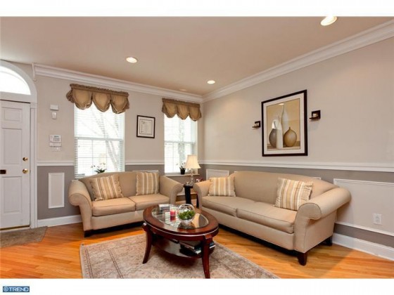 This 3 bedroom, 2.5 bathroom house in Queen Village offers 2300 sqft. of living space. The first floor features exposed brick and wainscoting and includes a living room, a separate dining room, and an eat-in kitchen with stainless steel appliances and granite countertops. The staircase is also unique and eye-catching.