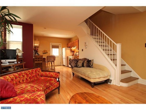 This 2 bedroom, 1 bathroom house includes over 1100 sqft. of living space over three stories. There are window boxes outside of the house, and a vestibule upon entering, to maintain internal temperature. Kitchen is a nice size but is not high end, and is separated from the living room with a breakfast bar. Good looking garden patio is located off the kitchen. On the second floor is a larger bedroom, a smaller office/den, and a full bathroom. The third floor is all the second bedroom, which is the size of the footprint of the building and has a Juliet balcony. This just looks like a nicely rehabbed house. The property is very close to the Italian Market, and has good access to Passyunk Ave. as well. It is listed for $250K and comes courtesy of Coldwell Banker Preferred.