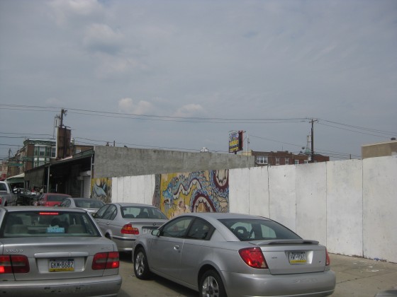 The warehouse spent its final days as a blighted hulk, weighing down the southern end of the Italian Market. For years we saw this building as a key factor in the underdevelopment of 9th Street, south of Washington Avenue. Since its demolition, its lot has been fenced in, with a plywood fence occasionally featuring some murals. And prospects have improved some for businesses on this stretch.
