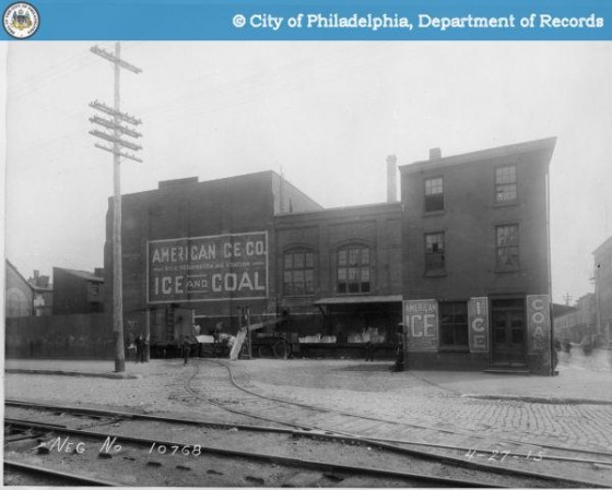 A couple of weeks ago, the Philadelphia Business Journal reported on a proposed retail project for the southeast corner of 9th & Washington, a mostly vacant lot that formerly contained a warehouse structure for the American Ice Company. Part of this warehouse was torn down years ago and replaced by a building that currently contains Anastasi Seafood. The rest of the building remained until its demolition in 2008. For more information about the building and what went on inside, click here or here.
