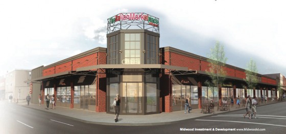 Now, Midwood Investments & Development have come up with a plan to redevelop this corner. The concept, entitled The Italian Marketplace, involved a one story commercial development with about 30,000 sqft of retail space, along with an underground parking lot with spaces for 70 cars. Take a look at the preliminary site plan and rendering, which we imagine are very much subject to change.