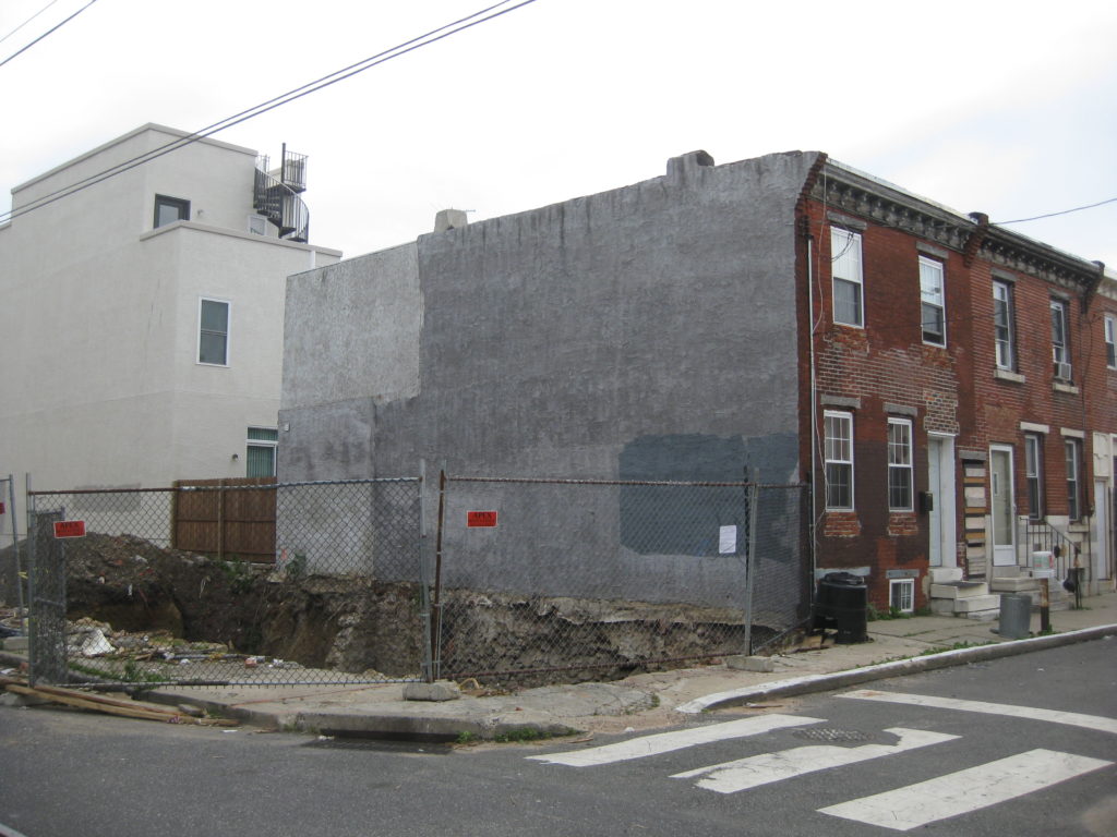 Back in the fall of 2011, Murray Development LLC built a new house at 1203 Ellsworth St., on the western half of a community garden. By the time spring rolled around, they had sold the 2,100 sqft home for a little over $400K, and what must have been a tidy profit. According to some neighbors, the developers left a bit of a mess in their wake, making it impossible to reestablish the community garden on the remaining corner lot. And now, thanks to a new hole that was recently dug, it appears as though any thought of a community garden returning to this location can now officially be put to bed.