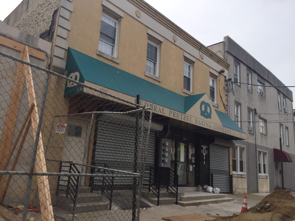 It's been about a year since we last visited the 600 block of Federal Street, at which point we told you about two exciting projects for the block. You may recall, developers had just purchased an ugly stuccoed former auto shop in the middle of the block and had plans to convert the building into 13 apartments with retail on the first floor. Other developers bought the former Federal Pretzel Company building and were on their way to converting the building into a laundromat, a vacant retail space, and two apartments upstairs. As we check in, we see there's been progress on both fronts, though neither project is anywhere near the finish line.