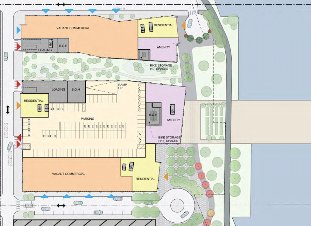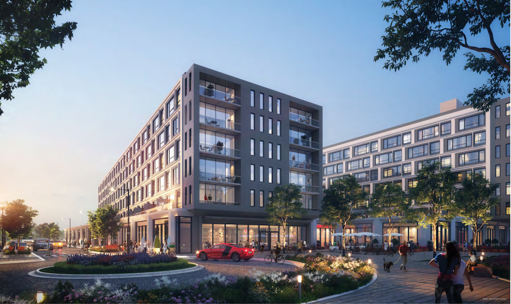 Here we are a year later, and we’re seeing yet another revision to the plan, with the townhomes now eliminated on the north side of the parcel as well. In their place, the new plan calls for another mixed-use building which will result in a total unit count of 855, a total parking spot count of 554, and almost 38K sqft of retail space between the two buildings. BLTa did the design work, which we can share from the new CDR packet.