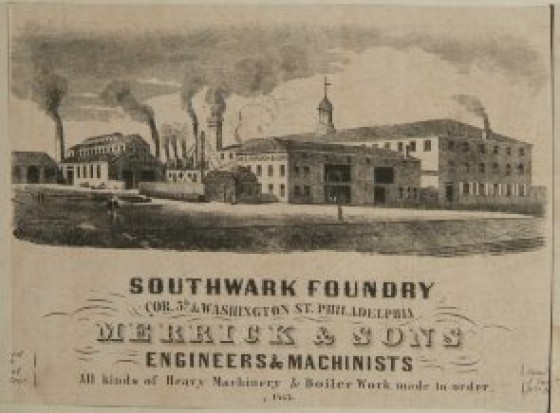 The Foundry quickly became among the largest and most productive in the nation. The caption to the 1856 newspaper ad shown here and taken from Philaplace.org boasts “all kinds of Heavy Machinery & Boiler Work made to order.”