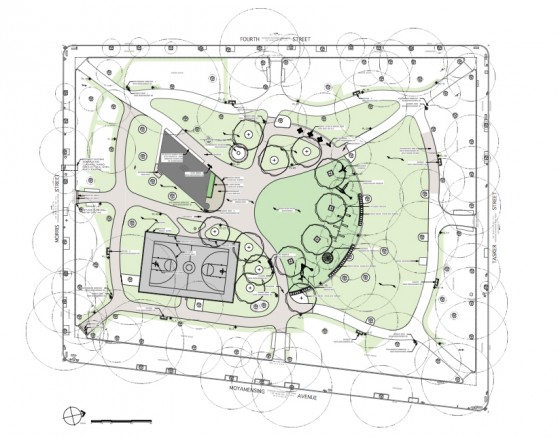 Thanks to the funds secured ($900k!), the park should be completely renovated by the time summer rolls around. The master plan (which can be seen here), shows lots of newly added paved walkways, benches, bike racks, lights, trash cans, with a new playground and basketball court.