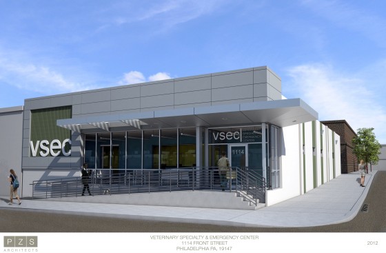 This facility will not contain a general veterinary practice, but will instead provide supplemental medical care for your pets during the hours that the vet’s office isn’t open, and specialty care for more complicated cases. And for the most complex situations, additional resources are available at VSEC’s larger facility in Levittown, which is only about half an hour away. The design for the new hospital, by PZS Architects, looks sleek and handsome.