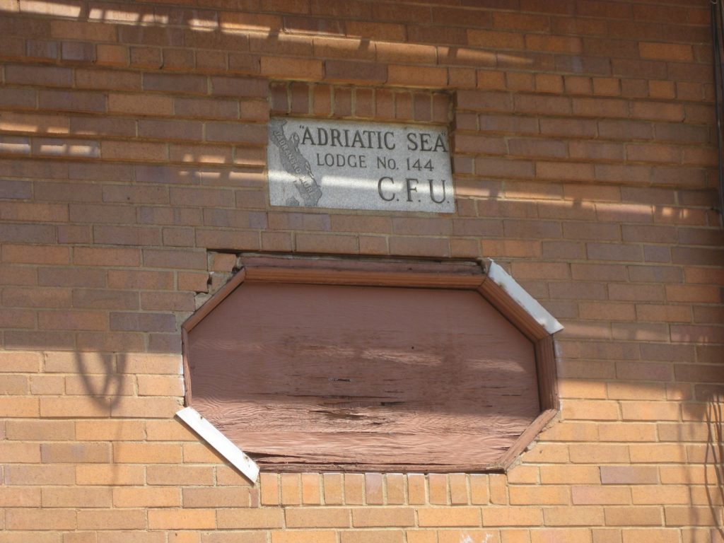 Oh cool, it was a Lodge of some kind. Perhaps for fisherman of the Adriatic? And what does CFU mean? Hint, it's not colony forming unit, as Google suggests. Looking a little more carefully at the picture of the sea carved into the stone, you can make out the words 'Jadransko More,' which means Adriatic Sea in Croatian. Lightbulb! CFU is Croatian Fraternal Union.