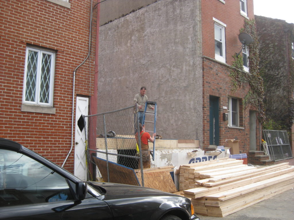 Looking a little to the north, we now look at the northwest corner of 5th & Dickinson, where foundations were being poured the last time we were here. Now, a home is framed and being sheathed as we speak.