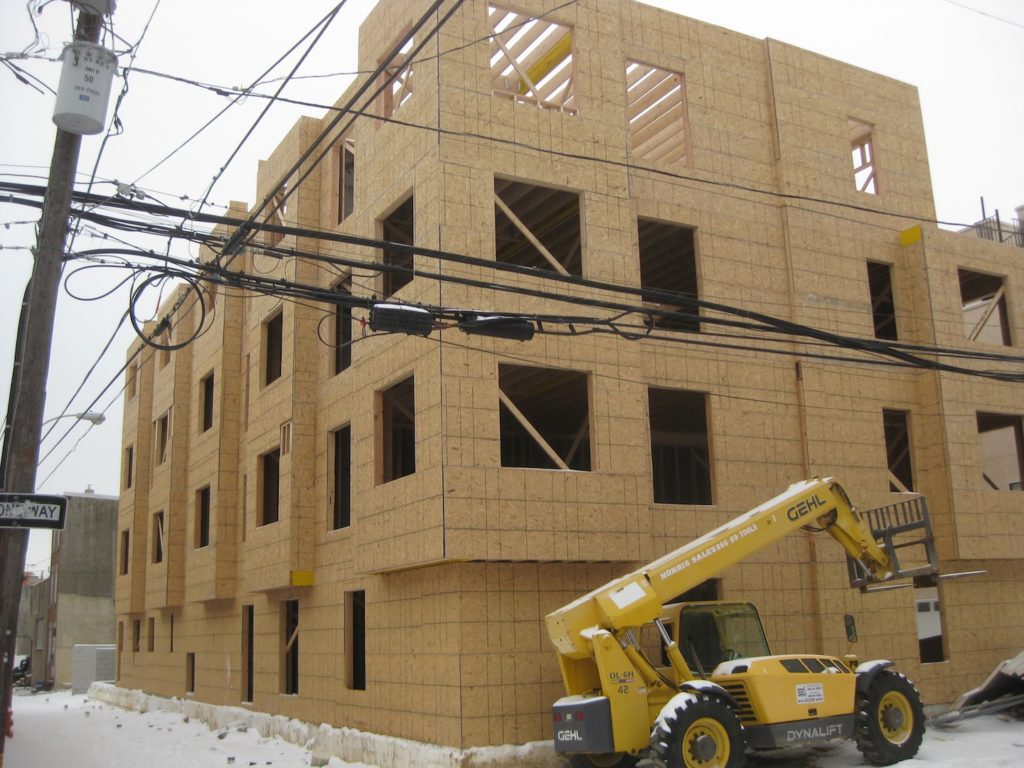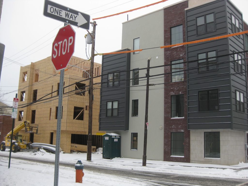 A couple months ago, we checked in on the project at 2nd & Wharton and spotted new foundations, behind the five new homes that replaced a warehouse that burned a couple years back. Passing by last week, we saw that the second phase of this project is pretty much framed out.
