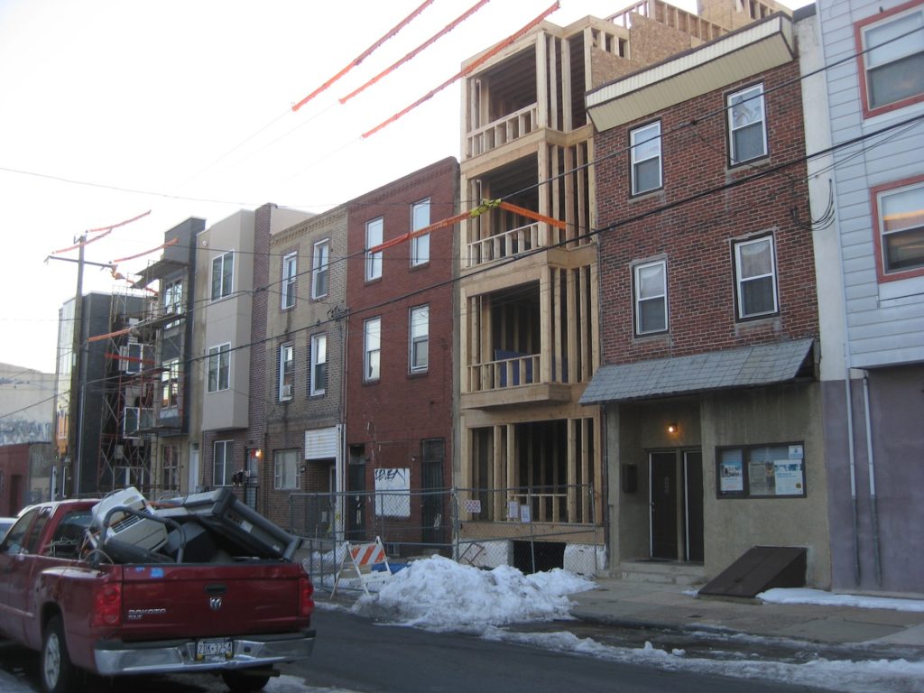 Meanwhile, there's plenty of construction ongoing nearby, and more to come. On 17th Street, two new buildings recently went up, and workers are out there every day (at least when snow isn't interfering with their efforts). On the 1600 block of Latona Street, fences have gone up in front of several vacant lots in anticipation of construction. We're pretty sure these units will be affordable, built by Innova.
