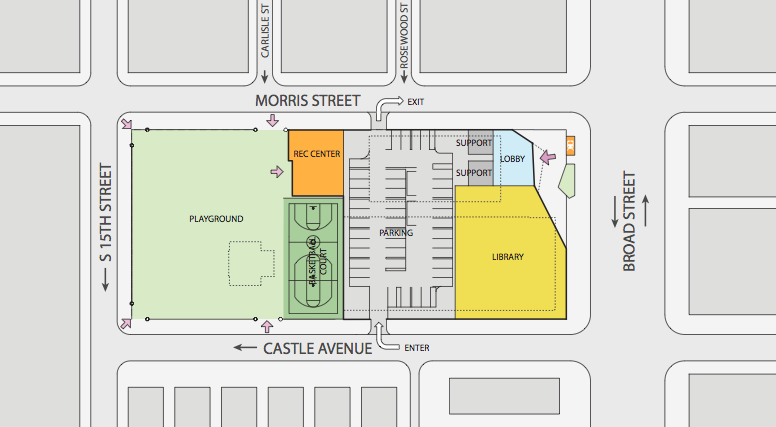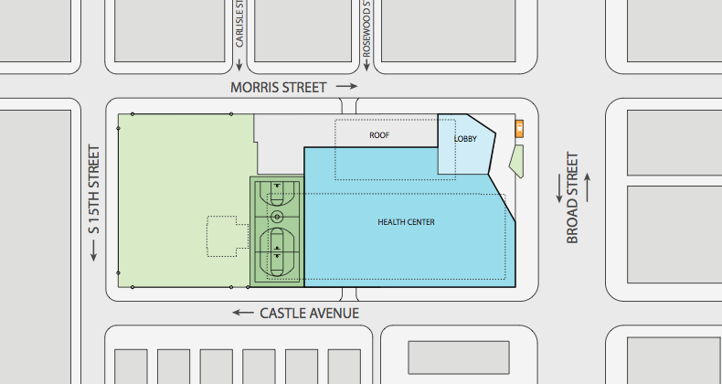 The rec center will grow in size and therefore increase its programming, while the playground will undergo a complete renovation. The library will take up most of the first floor space of the building. Books will surely be the main attraction, but technology will be right there too thanks to a grant from the William Penn Foundation. Also look for a Consumer Health Resource Center, a "Makerspace" which will have computers and a 3D printer, career development computer classes, and literacy programming. Also, the obvious synergy between having a pediatric primary care facility above a library makes us hope that the library gets some bonus use before or after appointments. A lobby and covered parking will take up the rest of the first level.