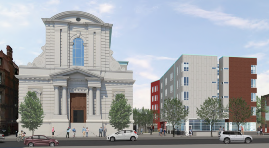 More good news for those that don’t recall – the plans for the Cascia Center continued to evolve as the years rolled along. In 2016, we learned that Saint Rita’s would be partnering with Catholic Health Care Services of the Archdiocese of Philadelphia to construct a new building that includes their desired new facility as well as dozens of affordable units for seniors. That plan called for a seven story building with 10K sqft of shrine-related use on the two bottom floors, 62 one-bedroom apartments on the five upper floors, and 8 parking spots.