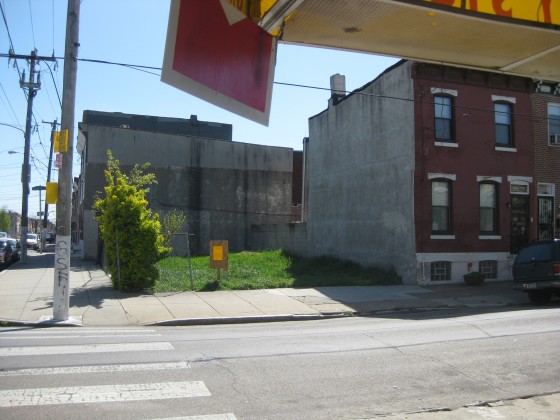 The developer purchased the corner lot at sheriff’s sale about a year ago. In case you’re curious, the adjacent lot, which is also vacant, is owned by another party that’s owned it since 1990 and hasn’t paid property taxes since at least 1999. Awesome.