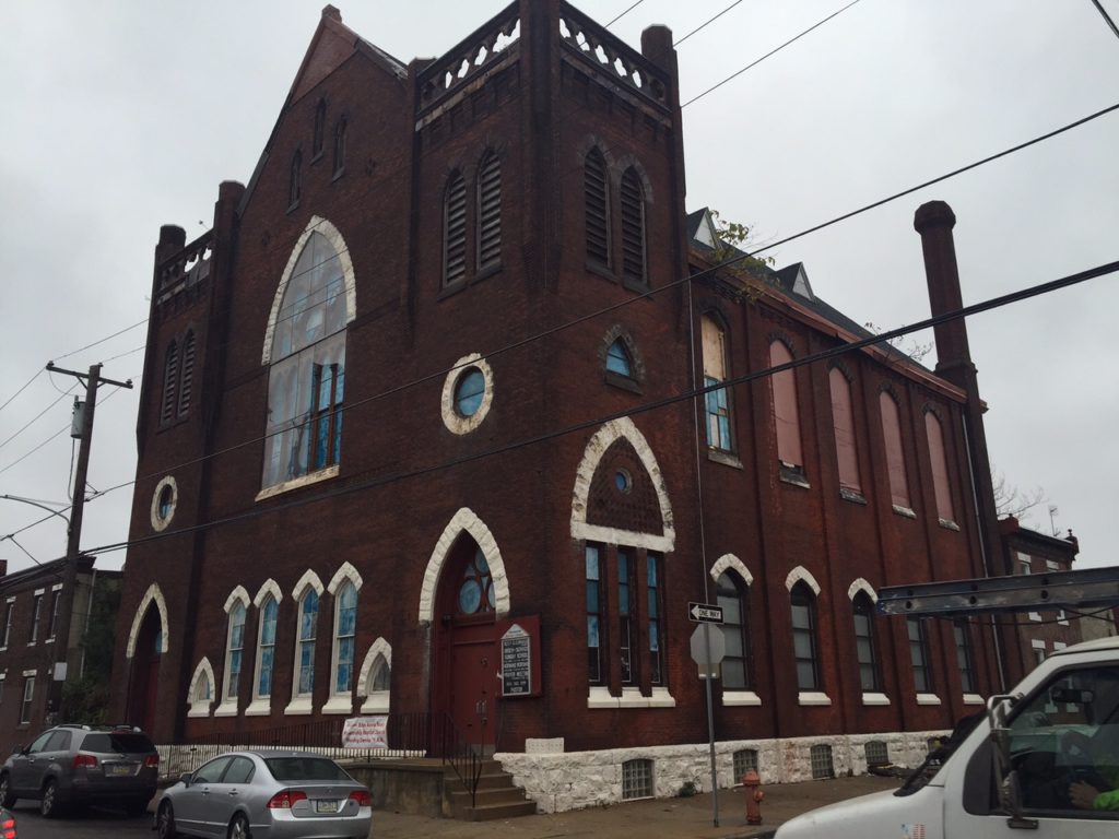 We were making our way across town on Wharton Street yesterday and spied a zoning notice at 1253-55 S. 18th St., a building that's been home to a church for many years. The sign on the building is actually pretty small, but some brick detail on the facade makes the use of the building quite clear, even if you can't make out what the sign says.