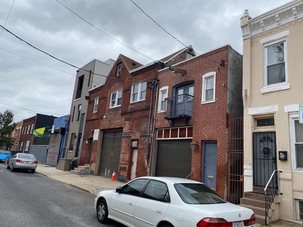 Anyway, Mambo Movers was based, for years, in a building at 1205 S. 15th St. in Point Breeze, but has moved to a new facility in Southwest Philly. The former home of Mambo Movers is a nondescript one-story garage as seen on 15th Street. But the property runs street to street, and a second building (or an extension of the 15th Street building, we can’t tell) is actually pretty cool looking from Carlisle Street. Check out the contrast: