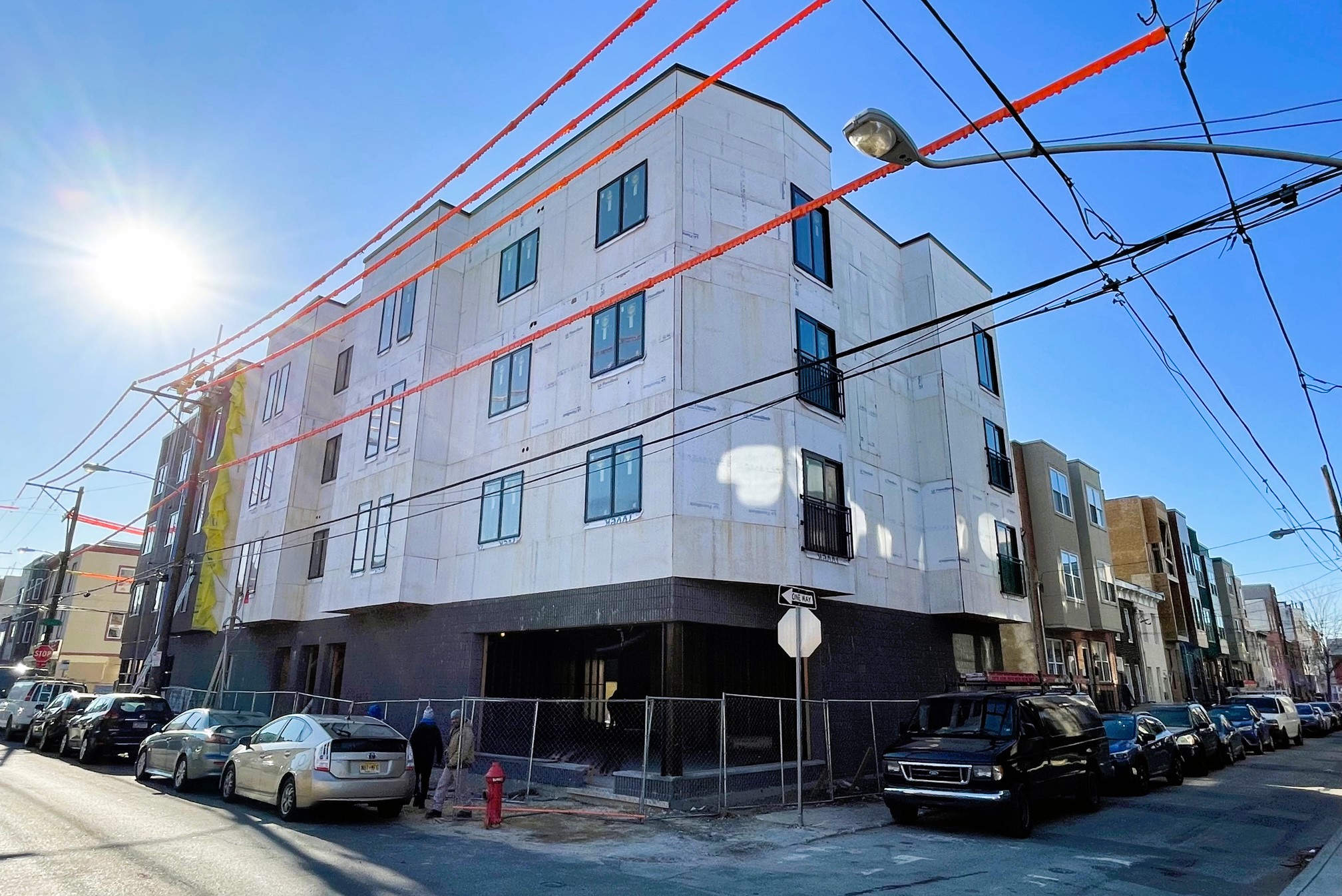This building has certainly taken shape over the last year. Moto Designshop handled the architecture, with a modern look featuring metal paneling and brick on the dark-toned facade. While there’s still plenty of work to be done, we are very encouraged to see things this far along, as this building is certainly an upgrade over what was here before. Also, we’ll be keenly interested to see what kind of retailer ends up leasing the space at the corner, as this is a terrific opportunity to increase the energy in this section of Point Breeze.