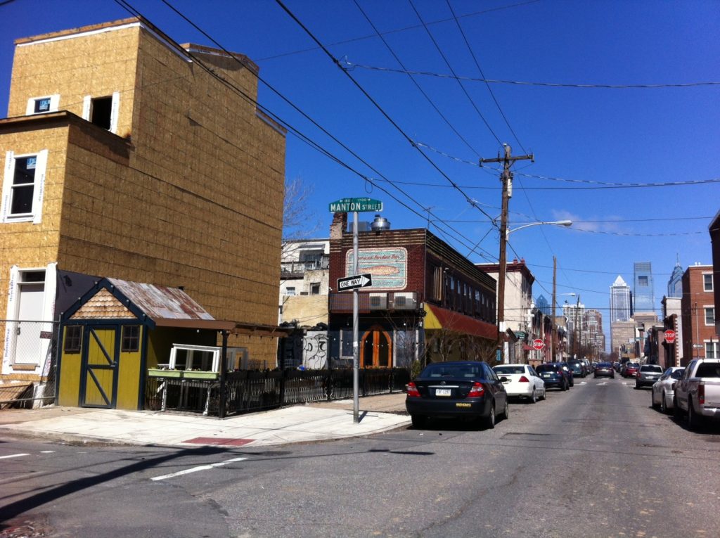 As you can see, there's a new home under construction at 1803 Manton St., right next to the Sardine Bar's outdoor seating area. The property was purchased last year by a developer who is building a by-right single family home with a 3rd floor setback. If we were the architects, we maybe would have put the front door on the western side of the building, but then again you have to figure that the person who ultimately buys this home will embrace the drinking establishment next door. Or else they probably would opt to live someplace else. Hopefully, once the home is finished and sold, the bar and the homeowner will be able to come to some kind of agreement on decorations for the wall to make it a little more interesting for patrons and passersby. Kind of gives a new meaning to the term "party wall," right?