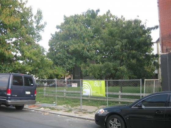 Across the street from a somewhat controversial lot-turned-garden, fencing went up around another long-vacant lot a few weeks ago, ostensibly in preparation for new construction. As you may have supposed from the signs that are up on the fence, this project will come from OCF Holdings, a sister company of the new coffee shop across the street. And, uh, this blog, too.