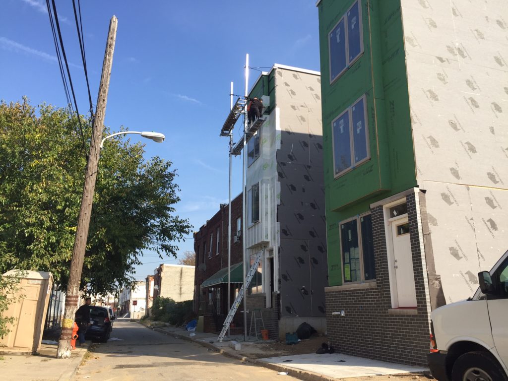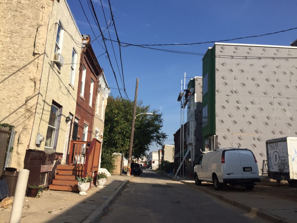 This is a little embarrassing. You may remember that just yesterday, we told you about a few new homes under construction on the 1400 block of S. Ringgold St. in Point Breeze. A reader was kind enough to point out that there's some additional construction taking place less than half a block away, on the 1400 block of S. Taylor Street. As impressed as we were about the construction on Ringgold Street, we're even more surprised by the construction on Taylor, as it's a third of a block away from the 25th Street CSX viaduct. Also, Taylor Street is in much worse shape than Ringgold. Still, three homes are under construction.