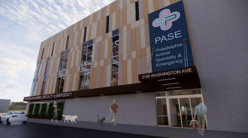 PASE has some overlapping ownership with Washington Avenue Animal Hospital, which is locates on the 1900 block of Washington. That business is essentially like a primary care doc for dogs and cats, and also runs an urgent care center. PASE, on the other hand, will act more like a hospital, offering 24/7 emergency care and also employing specialists in the surgery, cardiology, internal medicine, dermatology, and ophthalmology fields in their 65K sqft facility. They recently shared some renderings of what they’re planning to do with their new space, and this only adds to the excitement that we feel for the transformation of the building. Rauhaus Freedenfeld & Associates did the design work, utilizing their expertise in designing veterinary clinics to dramatically improve this corner.