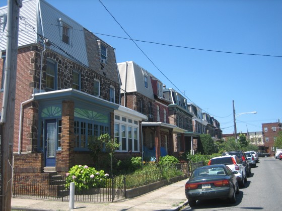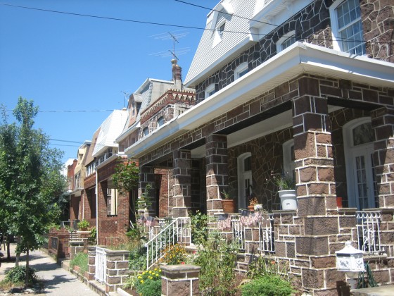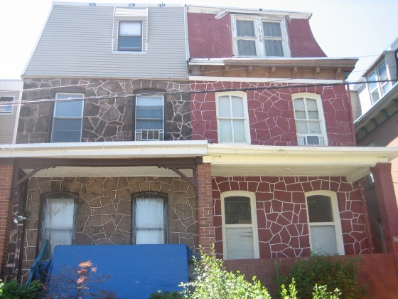 Wandering around Point Breeze, we noticed a series of houses that don’t fit in with the rest of the neighborhood. The houses on Castle Ave., a smaller street between Morris and Moore Sts., seem more appropriate for West Philly than the streets of Point Breeze, a neighborhood full of typical Philadelphia row houses. The “Castle” houses are twins with full porches, and they have stone or mock stone facades and mansard roofs.