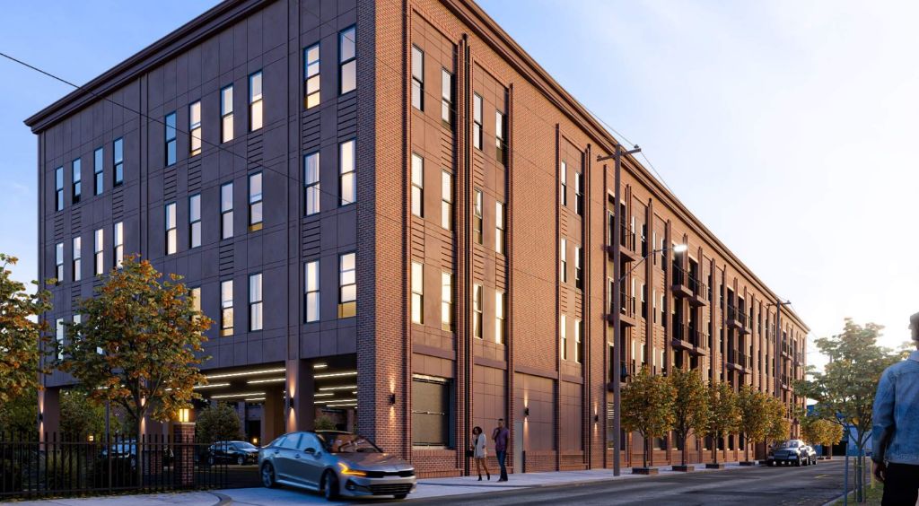 Don’t look now, but the vacant lot could soon get filled. Next month, a proposal for the site will get presented at Civic Design Review with a multi-family approach for this once industrial property. Plans call for 73 residential units along with 62 parking spaces, but a variance will be needed to proceed, as residential is not an allowable use for this property. DesignBlendz has designed a building that is definitely inspired by the industrial history of the neighborhood – red brick works with faux wooden panels to create a steady rhythm of narrow windows, with balconies and vertical brickwork breaking up the long, rectangular massing. Parking will be accessed from the Sepviva side of the building, which according to current plans, will consist only of residential use.