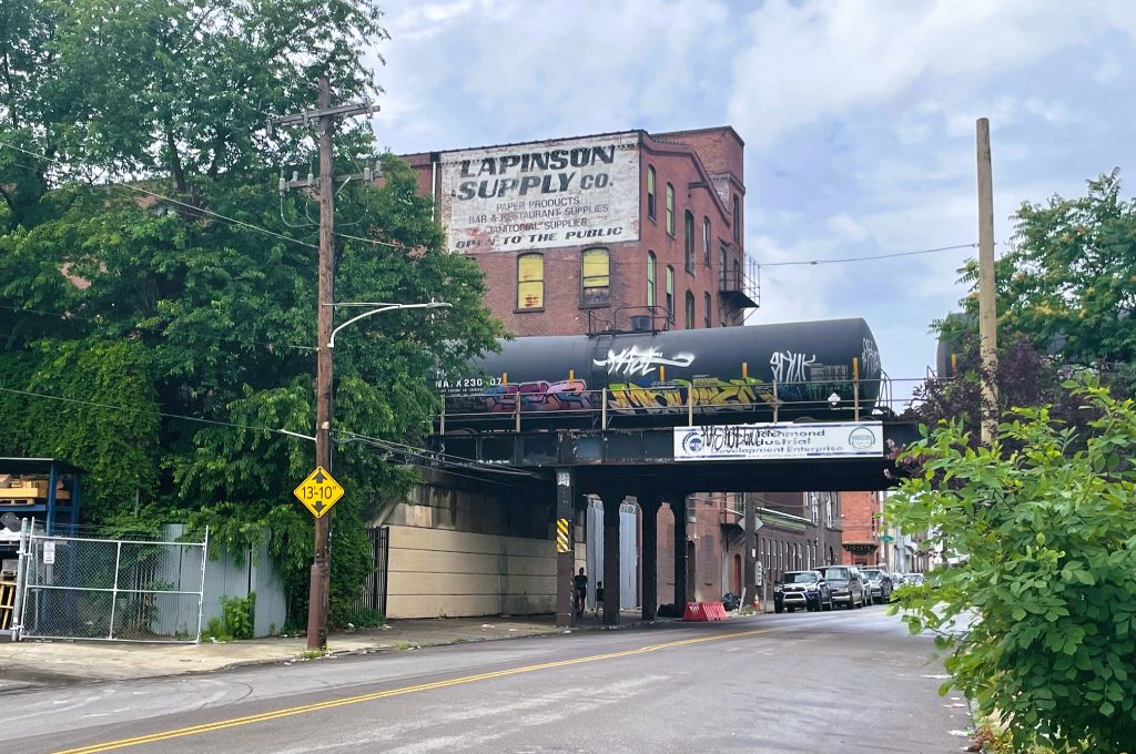 Our travels take us all over the city, but 2201 E. Tioga St. is located in a corner of Port Richmond that we confess we haven’t explored much. The vacant lot at this site sits in a hard-to-define area, where a mix of industrial sites, single family homes, and the occasional empty lot form an odd mix of neighbors. As you can see, the lot in question sits down Sepviva Street from a narrow rowhome block and across Tioga from the BTR Baler & Compactor Company. Historically, 2201 E. Tioga St. was also industrial, as Penn Galvanizing Company operated out of a building here for a large chunk of the 20th century. But the building was demoed about two decades ago and the property has sat vacant ever since.