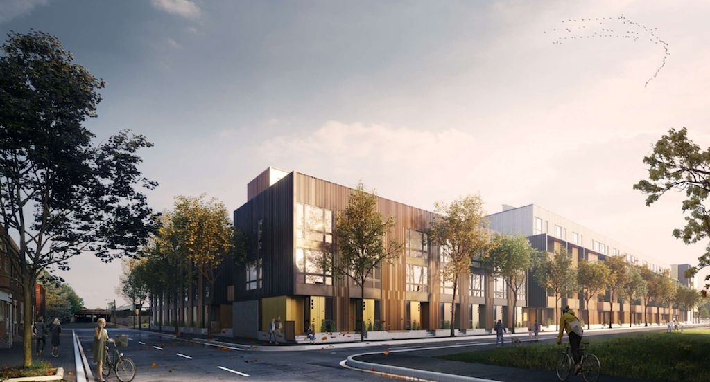 As we told you back in 2018, the project at Somerset Street, will bring over 100 units to this full city block. Previously the site of a huge warehouse, the entire parcel has been cleared in preparation for several Atrium Design Group-designed buildings including single-family homes, duplexes and a mixed-unit apartment building. It was mostly quiet when we visited the site, though a new concrete border was recently placed around the perimeter. It is tough to overstate how massive this extra-wide lot is, covering the 2.3-acre footprint of two full blocks. Let’s check out the site in the past and present and peer into our crystal ball to see what’s coming in the future.