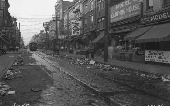 Alonzo Biggard photographed S. Fourth Street, looking south from the corner of South Street (no, not confusing at all, Department of Records) in 1936. The most important thing we noticed and wanted to share (besides the fact that Borden’s Malted Milk “with dipper of ice cream” sounds amazing) is that Philly looked a lot dirtier 70 years ago. On the heels of Philly’s Spring Cleanup day and the ongoing Unlitter Us campaign, we have to say modern-day Philadelphians (for all their negative reviews) are doing a great job cleaning up the streets that their Depression-era ilk once trashed.  Now, let’s keep moving in the right direction, Philly!