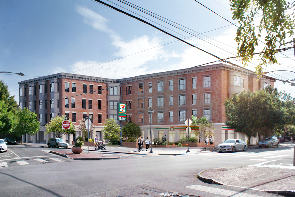 We’ve been jonesing for this building to be improved or torn down and replaced for a long time, or at least since 7-11 replaced Wawa a number of years ago. In 2016 we shared news of an upcoming project here, with plans to build a two-story addition to the property, adding fourteen apartments upstairs and maintaining the ground floor retail and the surface parking lot. This certainly felt like a step in the right direction, though we would have preferred something taller and denser and without a bunch of parking spots. For better or worse though, the plans never moved forward.
