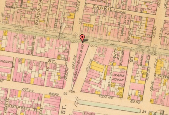The department store offered customers the chance to purchase garments made directly on-site. Snellenburg’s stated mission was “to sell merchandise at absolutely the lowest prices” but “never to sacrifice quality for cheapness.” For roughly 30 years, their building would occupy an island of land bound by South, 5th & Passyunk. As shown in the image here below, taken from G.W. Bromley’s 1910 Philadelphia Atlas, the three streets converge to form an odd triangle in the midst of otherwise quadrilateral plots.