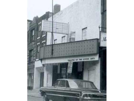 As the complexion of South Street changed from immigrant marketplace to bohemian Mecca, so too would the theatre change.  The New Palace folded in the early 60s and reopened shortly thereafter as home to a troupe of local actors and artists.  According to TLA Style, the avant-garde performance group calling itself the Theatre of the Living Arts was founded by director Andre Gregory and included such future stars as Morgan Freeman, Judd Hirsch and Danny Devito.  Devito and Hirsch are seen here below, performing on what appears to be South Street.