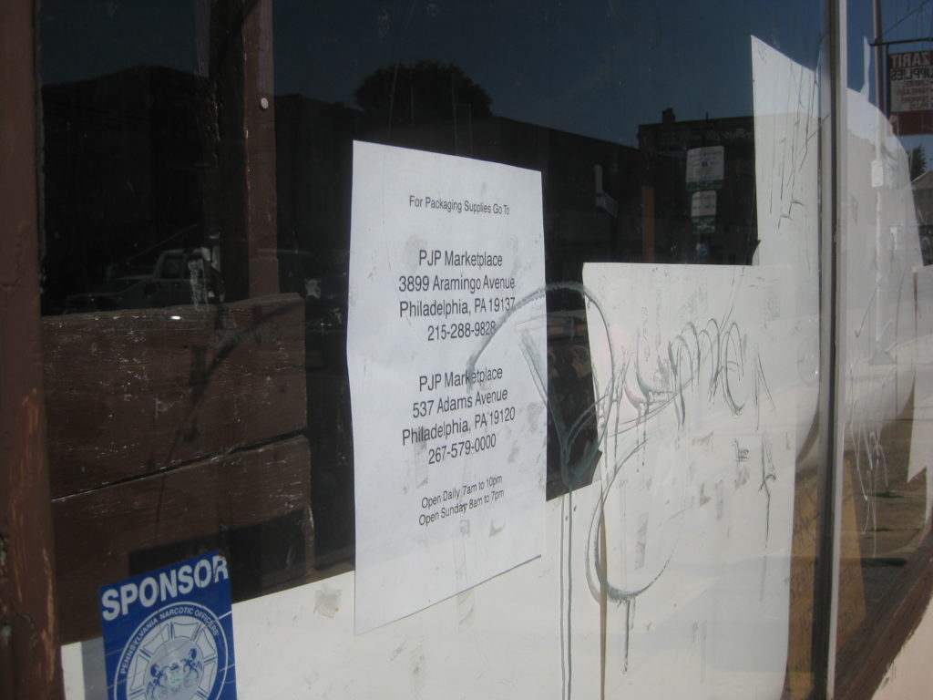 The shelves have been cleared out, the warehouse apparently emptied, and in the window, a sign suggests that former customers patronize PJP Marketplace, located by the Betsy Ross Bridge.