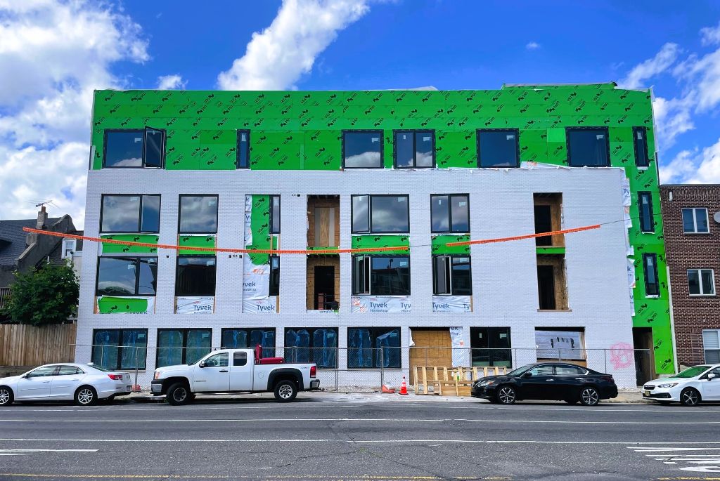 A few things have happened in the world since we last checked in here, but as sad as we are to see a local business go, we are pleased to report that major progress has been made. The new four-story structure will feature eight apartments per permits, with ground floor commercial space as well. KJO Architecture is designing the building, which is making solid progress. We are also happy to see that both facades of this building are getting classy treatments of white brick, so both Washington Ave. and little League St. will receive a handsome streetscape. We aren’t sure what’ll appear in the commercial space as of yet, but let’s check out the site to see how it looks today.