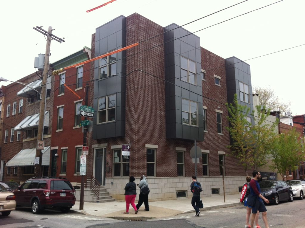 Last summer, we told you about plans for a new home at 767 S. 5th St., on the corner of 5th & Catharine in Queen Village. This was a vacant lot for years, with a collection of interesting statues that have either been relocated or soon will be. Passing by the other day, we discovered that the home is pretty much complete.