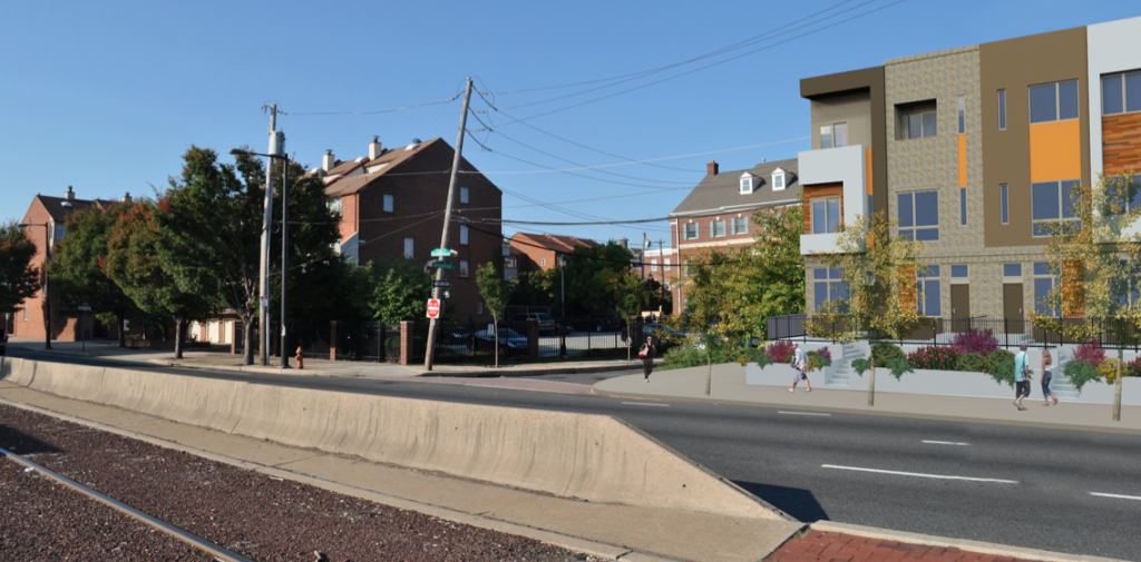 Last week, we learned from Plan Philly about plans for seventy-five new homes on a currently overgrown lot bordered by Columbus Blvd, Catharine Street, and I-95. JKR Partners did the design work for this new mini-neighborhood, which would clearly be a step up from the current situation on this lot.