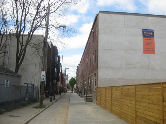 It’s been about a year since we checked in on Queen’s Walk, a sixteen-home development at 5th & Montrose that was built to sell, but ended up as rentals in the end. These homes were built where a dessert-topping manufacturer once stood, and across the street from where several blocks of PHA homes continue to stand.