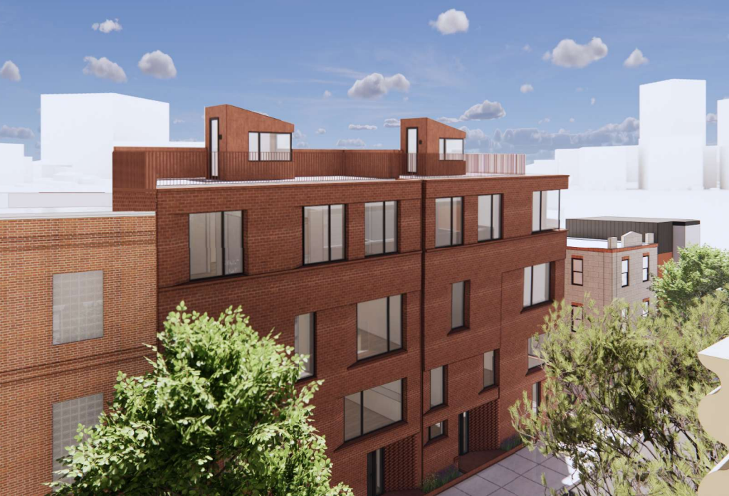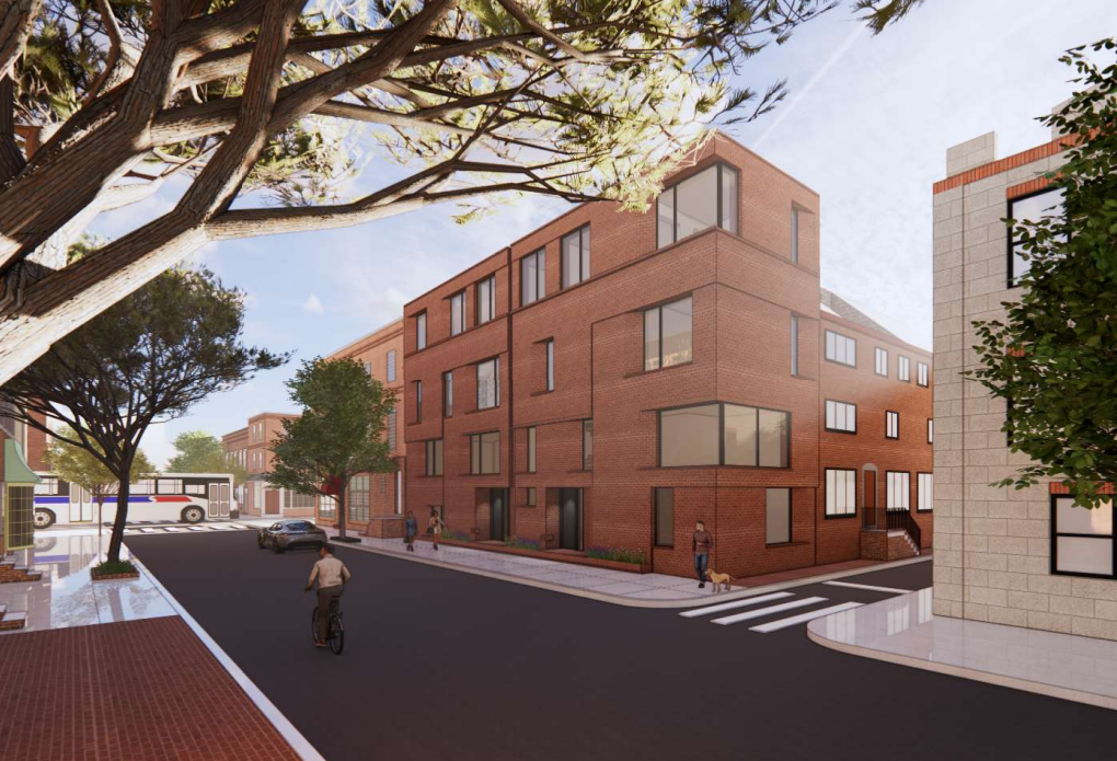 From the plans from Lo Design we can see the architects have done a great job designing homes that fit into the existing context of the neighborhood. The extensive use of masonry will match many of the nearby buildings, including color matching the bricks. The homes will rise a smidge above the historic building next door, but will blend in well with the three and four story buildings on the surrounding blocks.