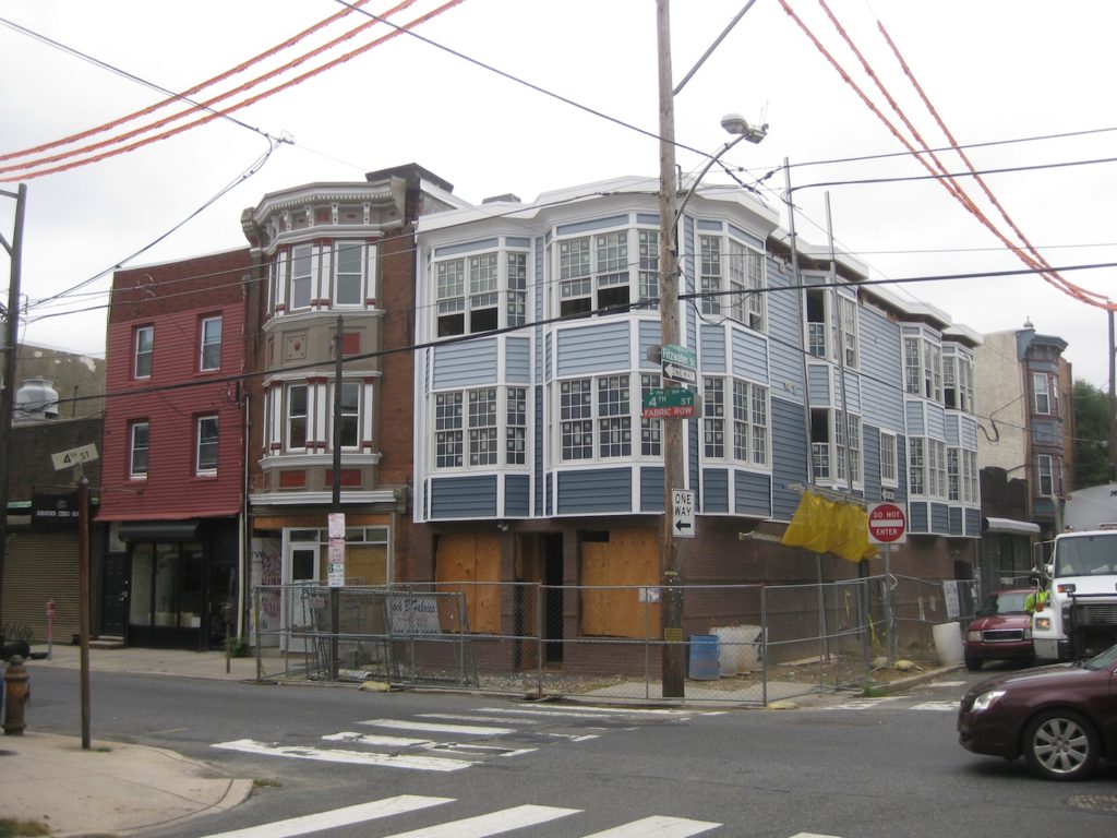 Last year, a fire ravaged Jack B. Fabrics at 748 S. 4th St. on Fabric Row. When we last visited the property in April, a new building was being framed out, replacing the demolished structure. When we passed by the other day, the exterior looked nearly complete.