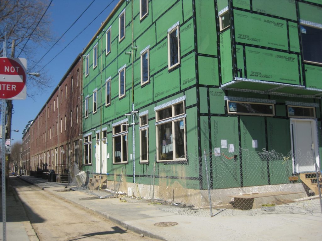 A few years ago, we shared the news that Queen's Walk at 5th & Christian was finished. Two rows of new rental homes had risen where dessert toppings were once manufactured. But the southeastern section of the project had a curiously vacant parcel that remained. We figured it was a green space for the community or something. But this was proven false about a year ago when we learned that three more homes were coming, which would complete the southern row of homes in the development.