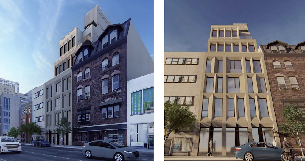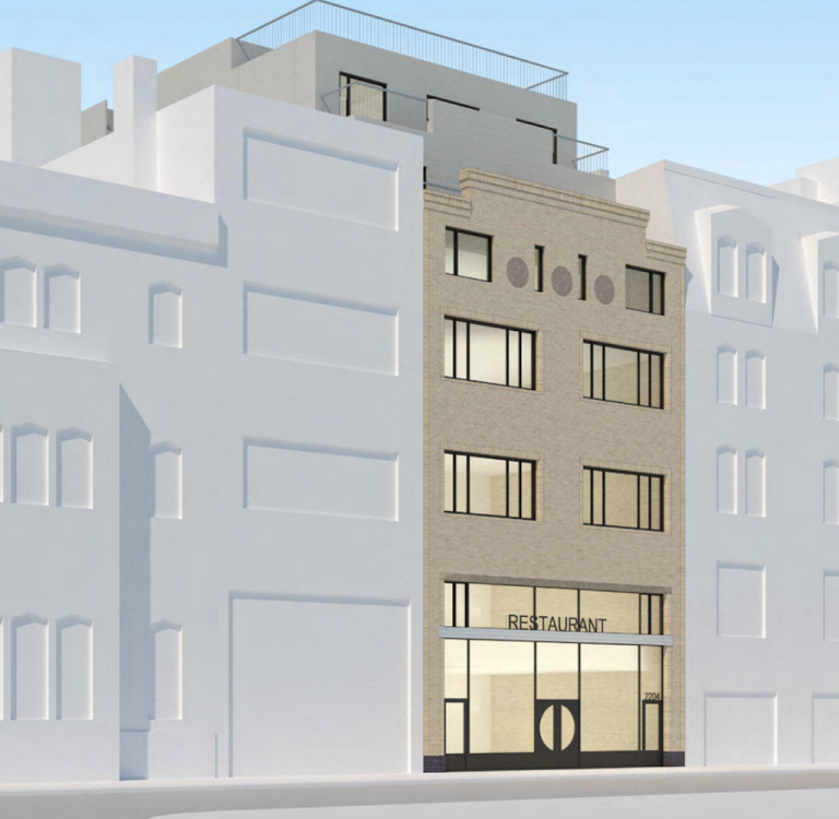So… what happened? Allow us to remind you. Back in 2019, developers had a plan to add a few floors to the building, which would have resulted in a mixed-use project with 25 rental apartments above ground floor retail. Because the property sits in the Rittenhouse Fitler Historic District, the Historical Commission needed to sign off, and indeed they did. Here’s another look at what could have been: