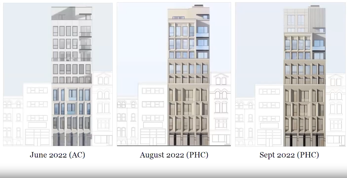 The developers made some adjustments, changing the color of the facade and switching up some of the proposed materials. When we last checked in on the project in August of 2022, there were still some kinks to work out. Fortunately, in September of 2022, the full Commission gave their approval for a final iteration of the project. The design from CosciaMoos is remarkably similar to the images we shared previously.