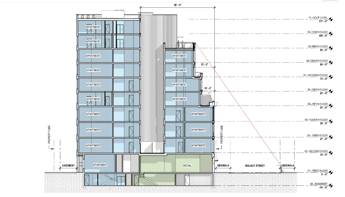 By the beginning of 2023, the building was demolished. After that… nothing happened. As the months rolled along, we grew increasingly concerned that the project would not be moving forward, and this prominent stretch of Walnut Street would be stuck with a vacant lot for years to come. But last month, we were exceedingly pleased to see that the developers pulled a by-right zoning permit, which offers some indication of forward momentum after a couple years of radio silence.