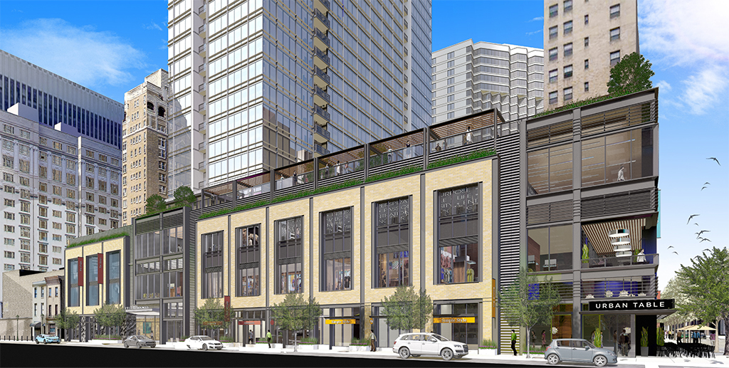 When we last reported on the property, we told you that the developers were looking to build a large mixed-use building, a trophy project befitting its ritzy location. The project was a 51 floor, 600' building with a mix of rental apartments, condos, office space, and retail. We were, however, a little bummed that the project would entail the demolition of three historic buildings on the 1900 block of Sansom Street. Solomon Cordwell Buenz did the design work and we showed you these renderings.