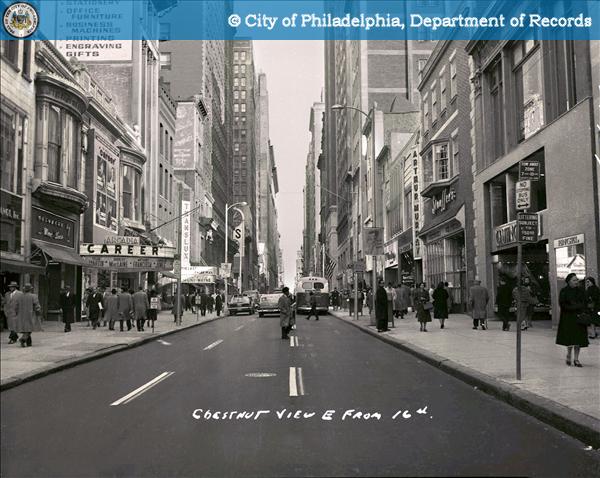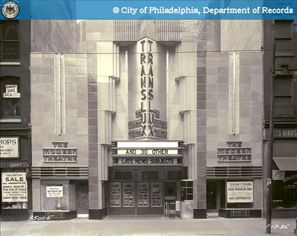 After our story yesterday about the Pomerantz building at 1525 Chestnut St., a reader checked in, wondering about the architecture of the retail space a couple doors down, which currently contains a Mandee. And they were right to wonder; this storefront doesn’t exactly look like a typical location offering “casual and dressy head to toe dressing for junior customers.” And that’s because this storefront was home to a cinema since before the talkie era began.