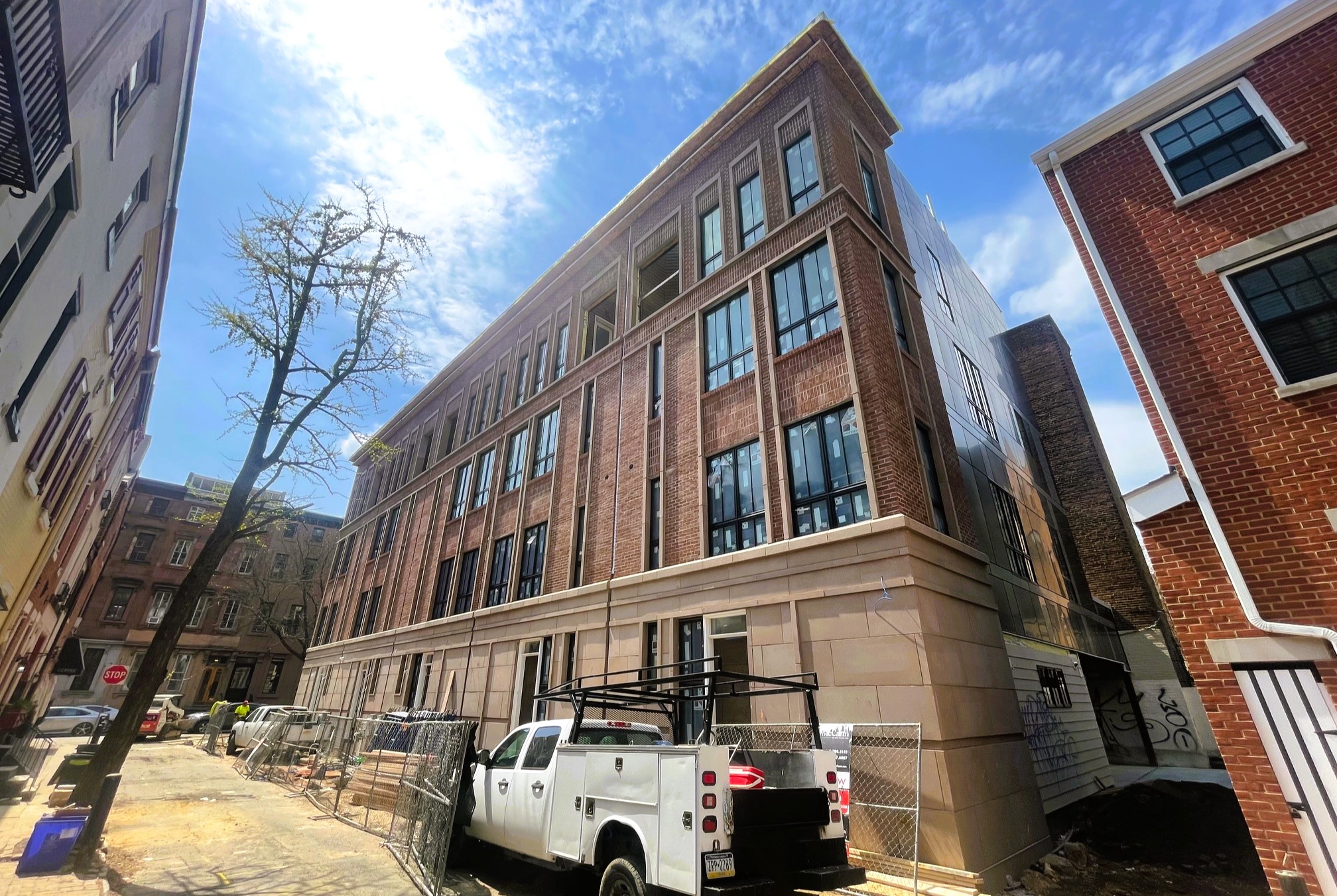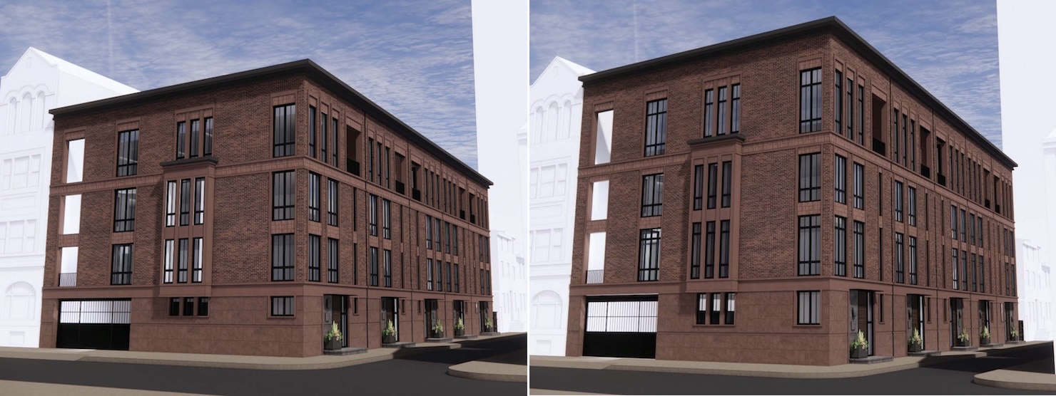 We know how much you love a story about a surface parking lot, so we’ve got you covered today. Let’s head back to January 2022 and whisk ourselves to a five-home proposal at the corner of S. Hicks & Pine in the lovely Rittenhouse Square neighborhood. It was there that a tiny surface lot stood out of place amongst the tall rowhomes along Pine St. and the smaller homes along the smaller Hicks St. (and just across from Suprema Coffee). And speaking of those varied heights, we checked in again just a month later, when a trip to the Historical Commission meant we got to learn more details of the plans. Interestingly, two versions were presented – one with a roof height that aligned with Pine, the other with Hicks. And yes, a surface parking lot within a historic district necessitates some non-binding feedback from the Commission, even though it’s been vacant since before the creation of said district.